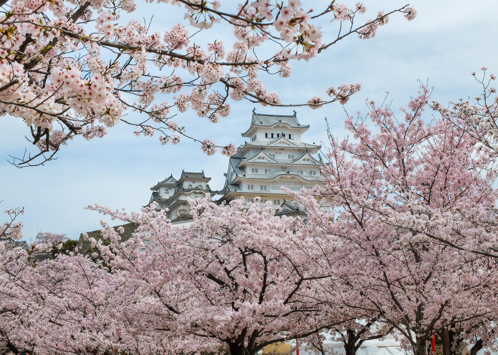 Himeji Castle, a UNESCO World Heritage site, is renowned for its stunning cherry blossom viewing. Often called the “White Heron Castle,” it is surrounded by thousands of cherry trees, offering spectacular sakura viewing spots.